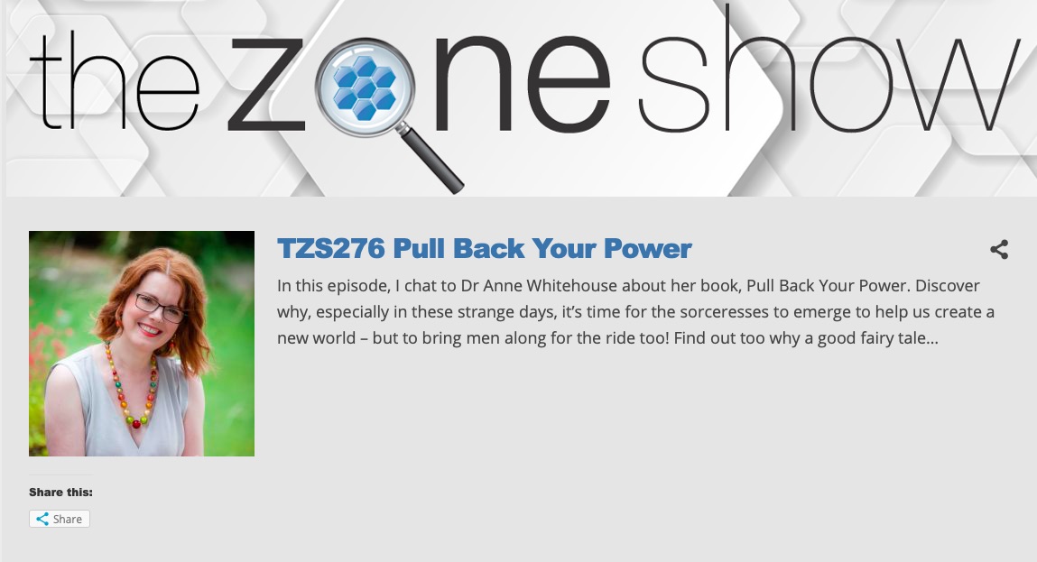 Last week I had the great pleasure of being interviewed by the author Tom Evans on his podcast The Zone Show. He’s definitely a kindred spirit! We talked about sorceresses, alchemy, transmutation, female power archetypes and fairy tales. We also discuss how women can finally free ourselves from the legacy of our disempowered past, reject the limitations placed on us by history, and finally embrace our full magical power again. Not only that, we also look at the other side of the coin – male empowerment – which happens to be the subject of my next book.
